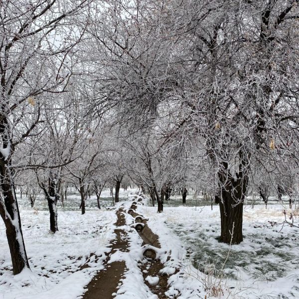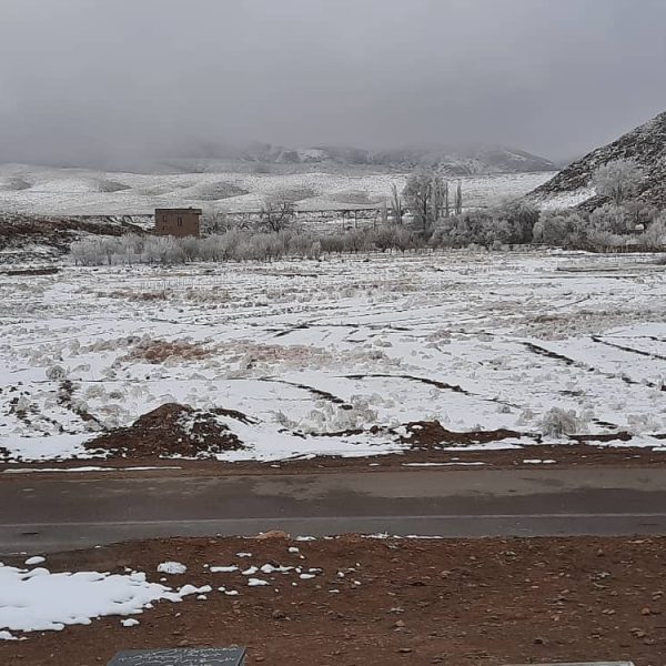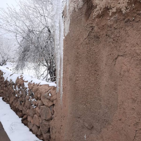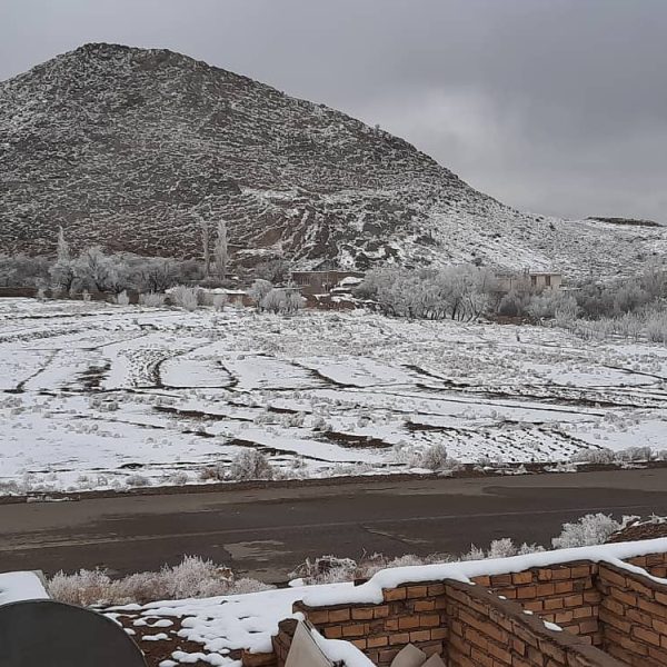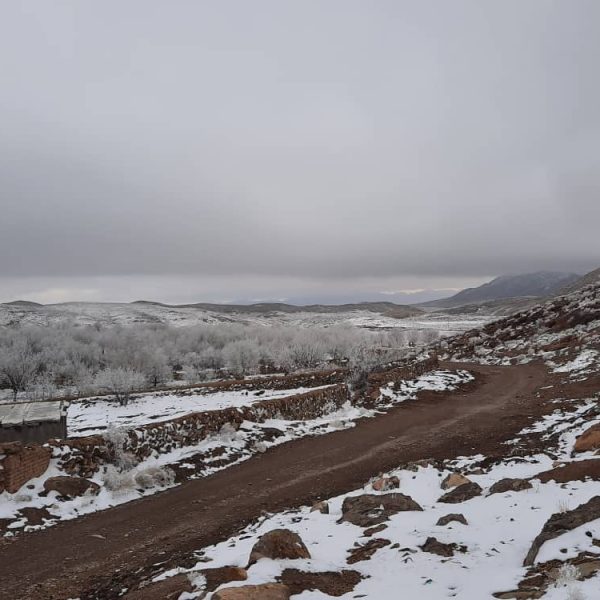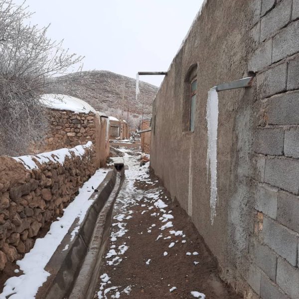 نمایی از بارش برف روستای خوسف در زمستان ۱۳۹۹