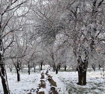 نمایی از بارش برف روستای خوسف در زمستان ۱۴۰۰